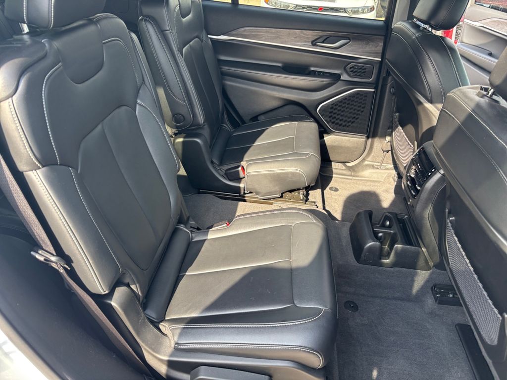 Take advantage of our attractive low-rate financing options. Our access to various Credit Unions and National Banks can provide financing for most credit levels. We can tailor a finance package to fit your needs. To get started, complete our secure online credit application. Quick Order Package 22E, 10.1" Touchscreen Display, 3.45 Rear Axle Ratio, 3rd row seats: split-bench, 4-Wheel Disc Brakes, 4G LTE Wi-Fi Hot Spot, 506 Watt Amplifier, 6 Speakers, 9 Amplified Speakers w/Subwoofer, ABS brakes, Active Noise Control System, Air Conditioning, All Radio Equipped Vehicles, Alloy wheels, AM/FM radio: SiriusXM with 360L, Anti-whiplash front head restraints, Apple CarPlay, Audio memory, Auto High-beam Headlights, Automatic temperature control, Brake assist, Bumpers: body-color, Capri Leather Seats, Compass, Connected Travel & Traffic Services, Connectivity - US/Canada, Delay-off headlights, Disassociated Touchscreen Display, Driver door bin, Driver vanity mirror, Dual front impact airbags, Dual front side impact airbags, Dual-Pane Panoramic Sunroof, Electronic Stability Control, Emergency communication system, For Details, Visit DriveUconnect.com, For More Info, Call 800-643-2112, Four wheel independent suspension, Front anti-roll bar, Front Bucket Seats, Front Center Armrest w/Storage, Front dual zone A/C, Front fog lights, Front reading lights, Fully automatic headlights, Garage door transmitter, Global Telematics Box Module (TBM), Google Android Auto, GPS Antenna Input, GPS Navigation, HD Radio, Heated door mirrors, Heated front seats, Heated rear seats, Heated steering wheel, Illuminated entry, Integrated Center Stack Radio, Integrated Voice Command w/Bluetooth, Interior Rear Facing Camera, Knee airbag, Leather steering wheel, Low tire pressure warning, Manual Fold Seatbacks, Memory seat, Normal Duty Suspension, Occupant sensing airbag, Outside temperature display, Overhead airbag, Overhead console, Panic alarm, ParkView Rear Back-Up Camera, Passenger door bin, Passenger vanity mirror, Power door mirrors, Power driver seat, Power Liftgate, Power passenger seat, Power steering, Power windows, Radio data system, Radio: Uconnect 5 Nav w/10.1" Display, Radio: Uconnect 5 w/8.4" Display, Rear air conditioning, Rear anti-roll bar, Rear reading lights, Rear window defroster, Rear window wiper, Reclining 3rd row seat, Remote keyless entry, Security system, SiriusXM Radio Service, SiriusXM Satellite Radio, SiriusXM w/360L, Speed control, Speed-Sensitive Wipers, Split folding rear seat, Spoiler, Steering wheel mounted audio controls, Tachometer, Telescoping steering wheel, Tilt steering wheel, Traction control, Trip computer, Turn signal indicator mirrors, USB Host Flip, Variably intermittent wipers, Voltmeter, Wheels: 18" x 8.0" Fully Painted Aluminum 2, and Wheels: 20" x 8.5" Polished/Painted AluminuM.